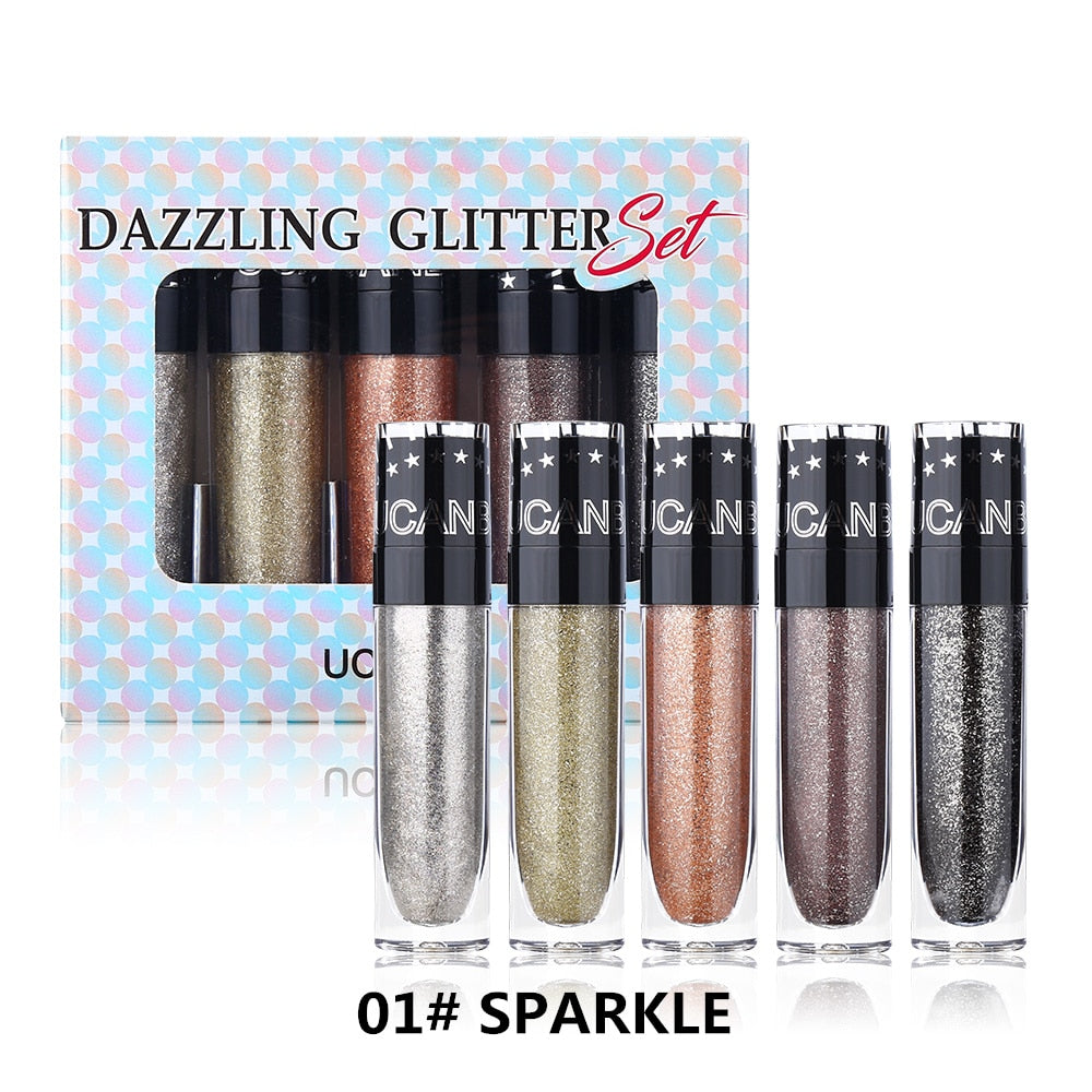 Set 1- Sparkle: Incluindo 5 cores diferentes, textura leve. Incluindo Diamond Crush, Gold Foil, Melting Rose, Lightsalmon, Dark Night. Este conjunto pode ser usado não só nas pálpebras, mas também nas sobrancelhas, lábios, bochechas, rosto e corpo para acentuar o seu estilo de maquiagem. Sugere-se que possa ser usado sobreposto a outros cosméticos.